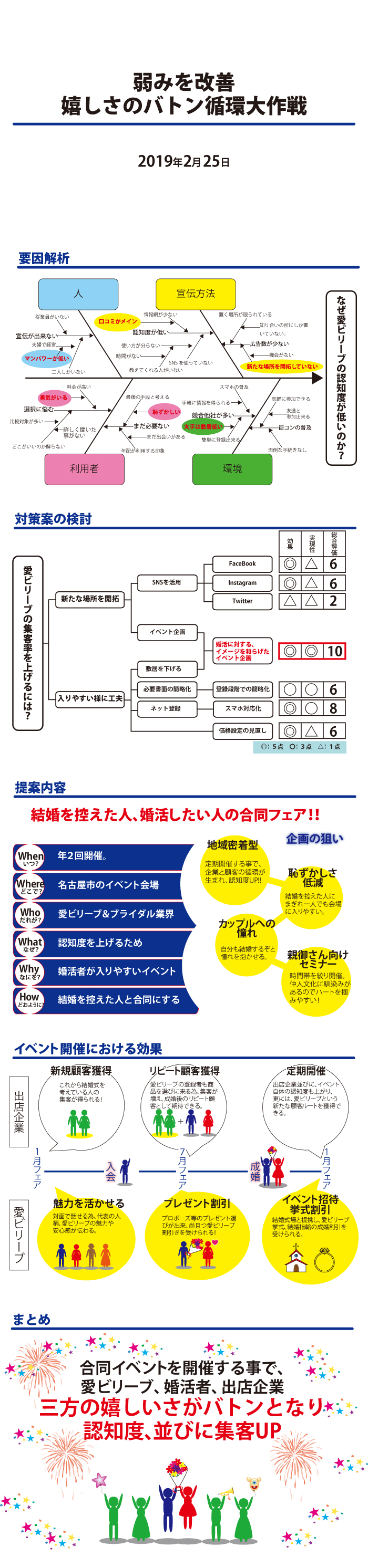 婚活イベントを定期開催する事で、愛ビリーブの認知度も上がり、地域出店企業とイベント自体の認知度も上がる。
