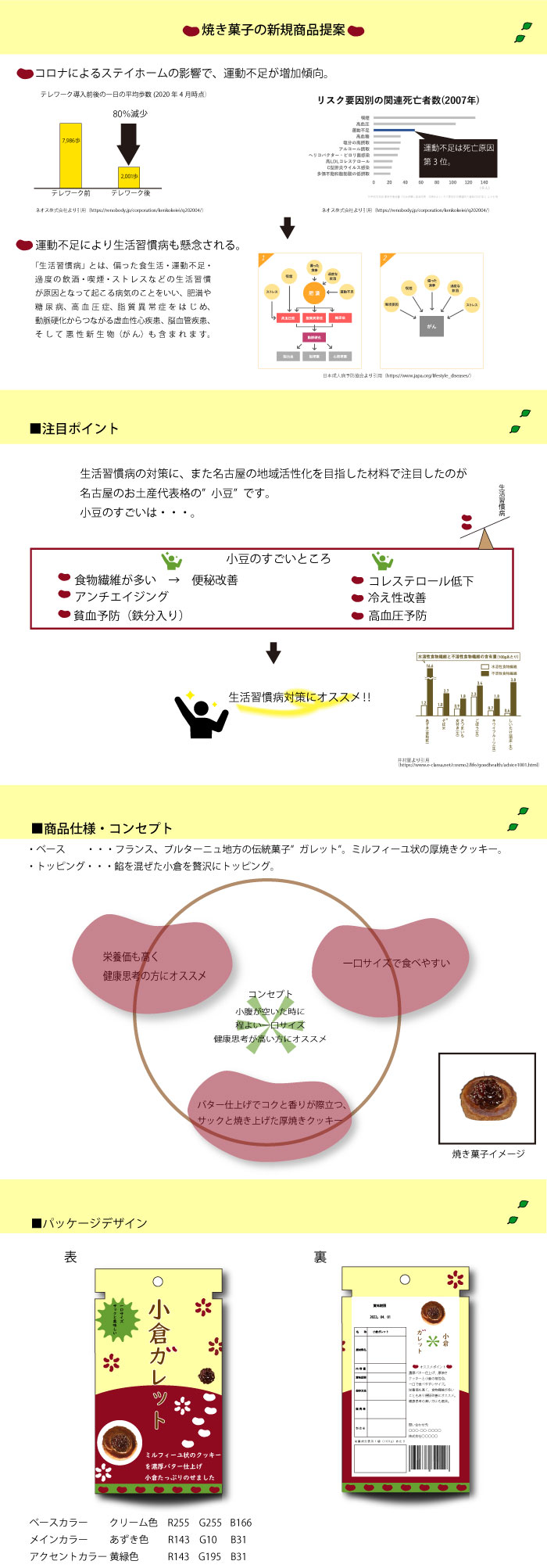 • コロナにより運動不足が増える傾向があり、生活習慣病になりがちな現代に対し、健康数値高い材料+名古屋のお土産をイメージし制作